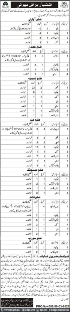 Department of Balochistan Jobs Advertisement 2026 – Balochistan Government Jobs